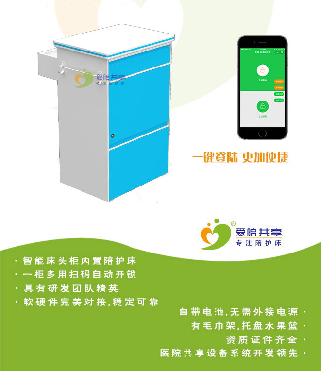 共享陪護(hù)床適用很多大醫(yī)院,可以選擇直接購(gòu)置新型的設(shè)備為患者和家屬提供便利,也可以合作供應(yīng)商免費(fèi)進(jìn)行投放,在使用的過程中可為醫(yī)院以后的發(fā)展打下良好的基礎(chǔ)。共享陪護(hù)床是一款多功能的產(chǎn)品,即可當(dāng)床頭柜使用,又可做陪護(hù)床,相對(duì)成本價(jià)要高一些,但這種共享智能陪護(hù)床是未來的發(fā)展趨勢(shì)。愛陪共享陪護(hù)床咨詢:400-993-6038